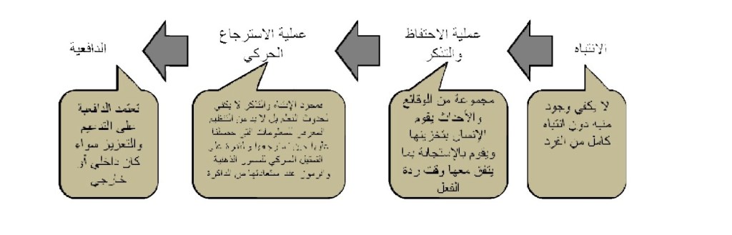 ١- تتأثر عملية الإنتباه بخصائص النتلقي والنموذج والدافعية إلى الإنتباه.