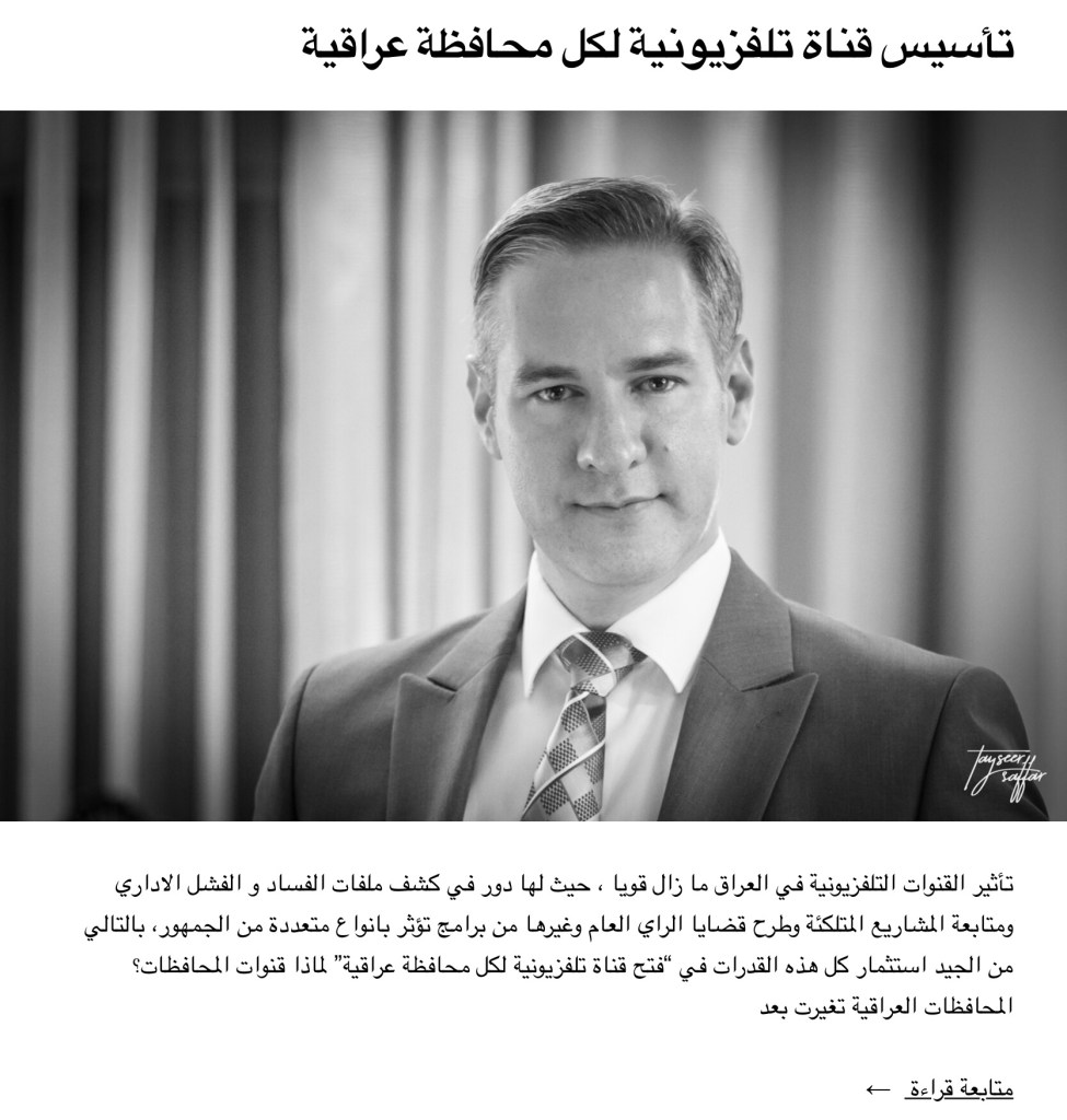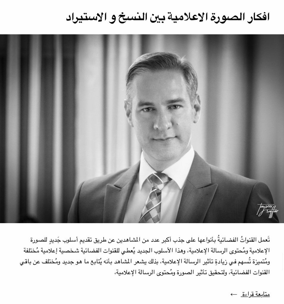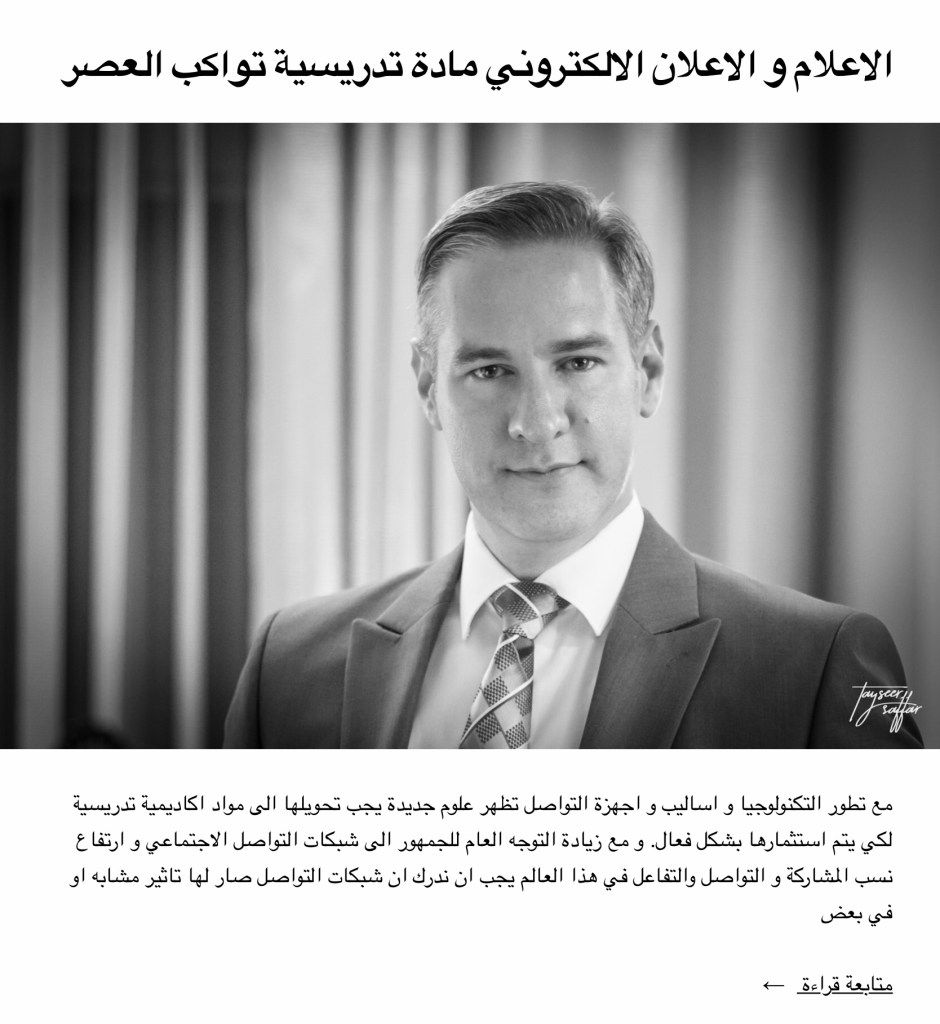 مقالات اعلامية مجموعة من المقالات الاعلامية العملية و النظرية التي تشمل مجالات عدة للاعلام، كانت نتاج خبرة الاعلامي حسام الطائي لاكثر من ١٠ سنوات اضغط على الصورة لقراءة المقال كاملا شارك هذا الموضوع: شارك على فيسبوك (فتح في نافذة جديدة) فيس بوك المشاركة على X (فتح في نافذة جديدة) X مشاركة على واتساب (فتح في نافذة جديدة) WhatsApp مشاركة على تيليجرام (فتح في نافذة جديدة) Telegram Share on LinkedIn (فتح في نافذة جديدة) LinkedIn اطبع (فتح في نافذة جديدة) طباعة Email a link to a friend (فتح في نافذة جديدة) البريد الإلكتروني إعجاب تحميل...